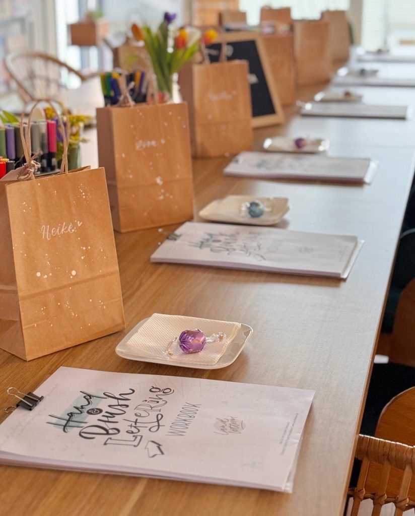 Dann ist der Handlettering-Workshop bei Ingrid genau das Richtige für dich. In entspannter Atmosphäre lernst du, wie aus einfachen Strichen kunstvolle Buchstaben und einzigartige Werke entstehen – voller Persönlichkeit und Kreativität. Ob als Geschenk, Deko oder einfach für dich selbst: Dein eigenes Lettering macht garantiert Freude.